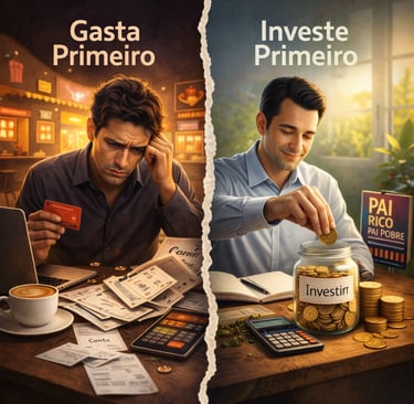 Uma gasta tudo primeiro e tenta investir só se sobrar alguma coisa.